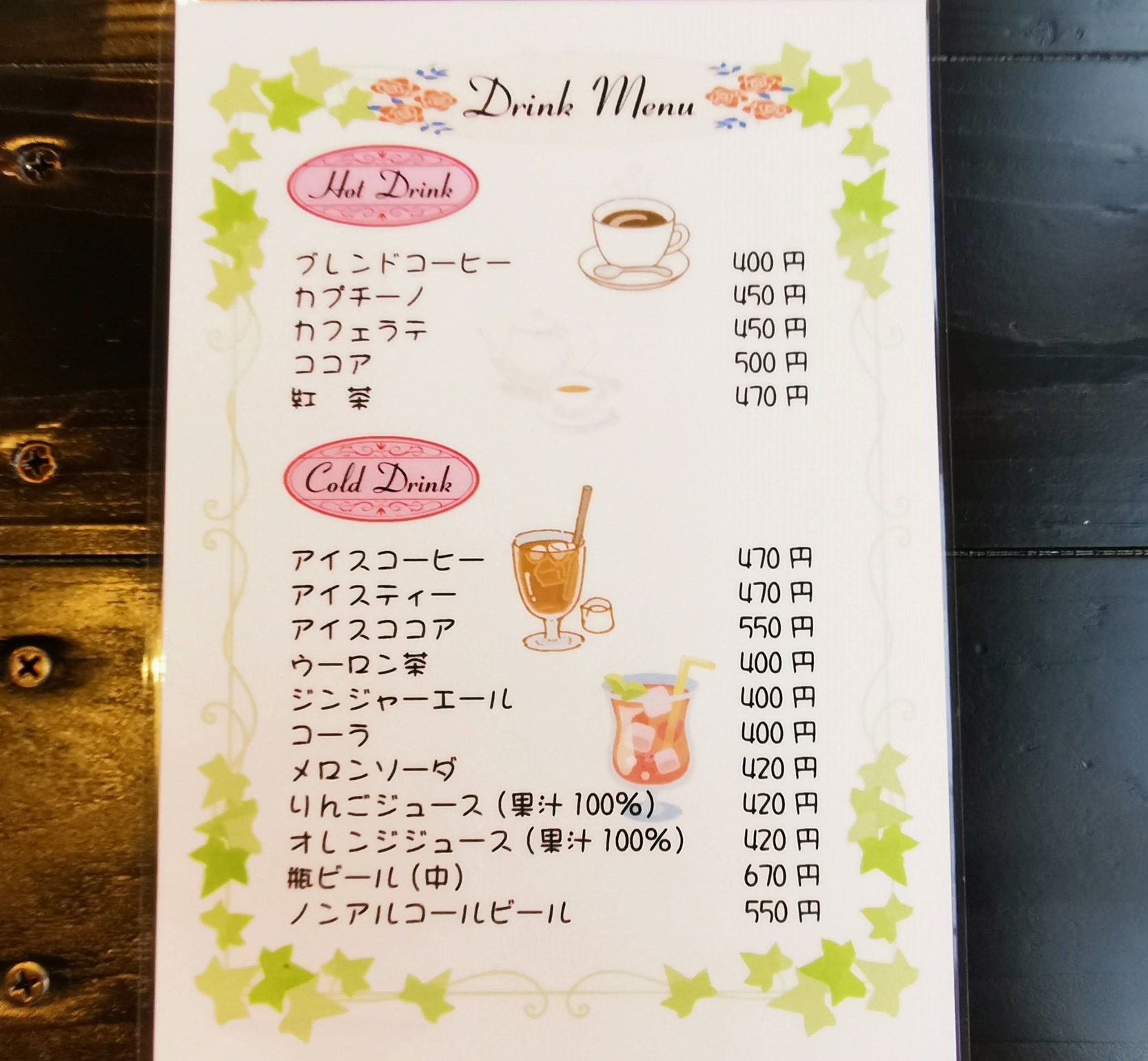 コーヒーには、モカ イルガチョフ・ケデブなどもあり、コーヒーにもこだわりを感じます。