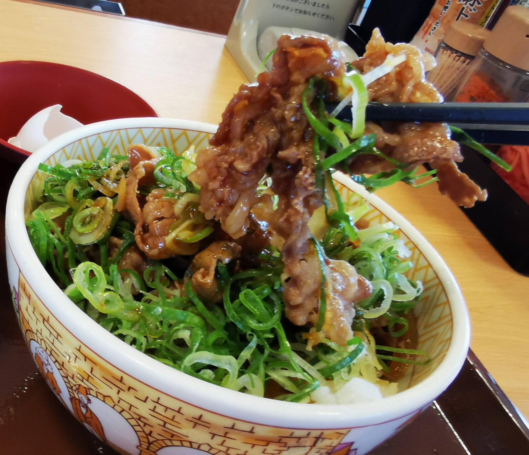 ハレーションのところに書いてあった「ねぎ玉牛丼」の並にしてみました。480円(税込)