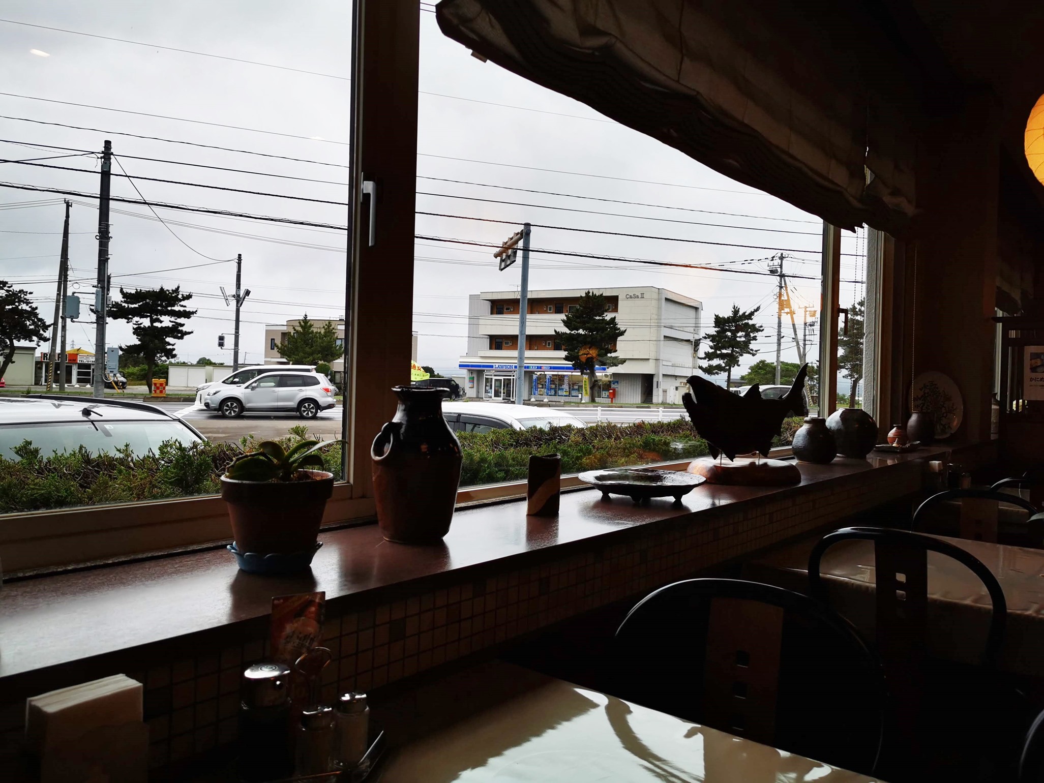 窓からは、ローソンが見えます。