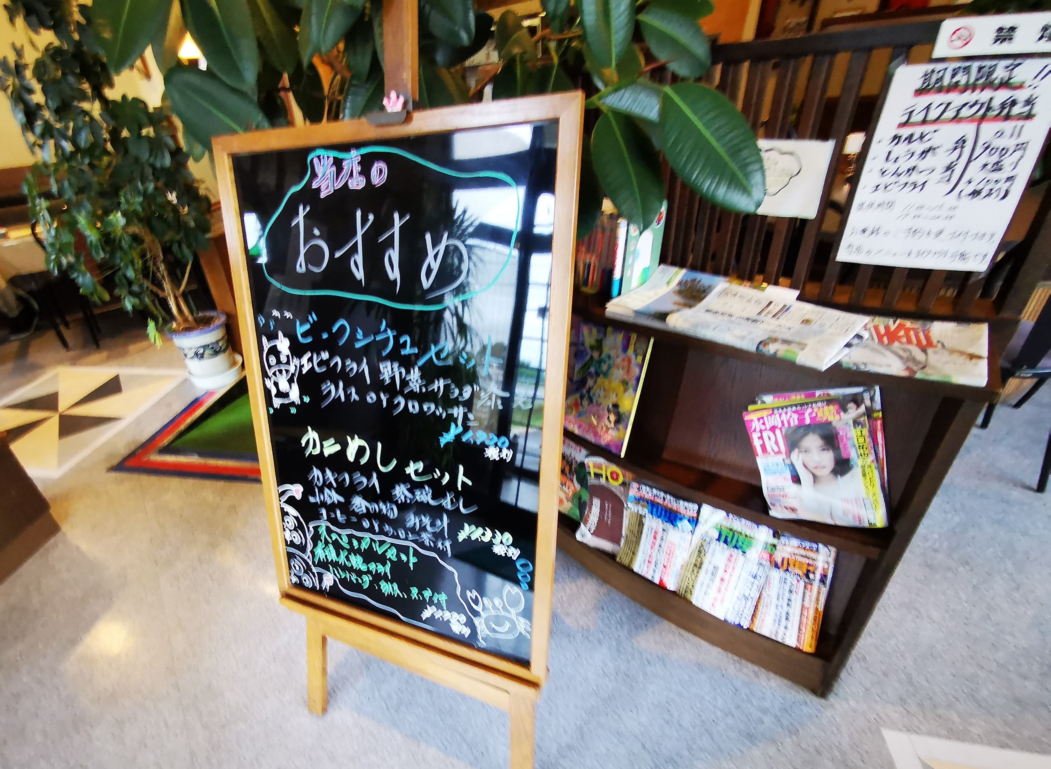 お店に入るとこの黒板があります。