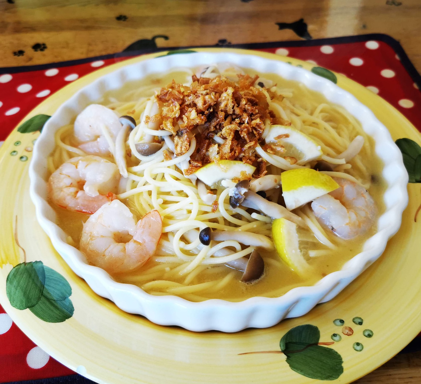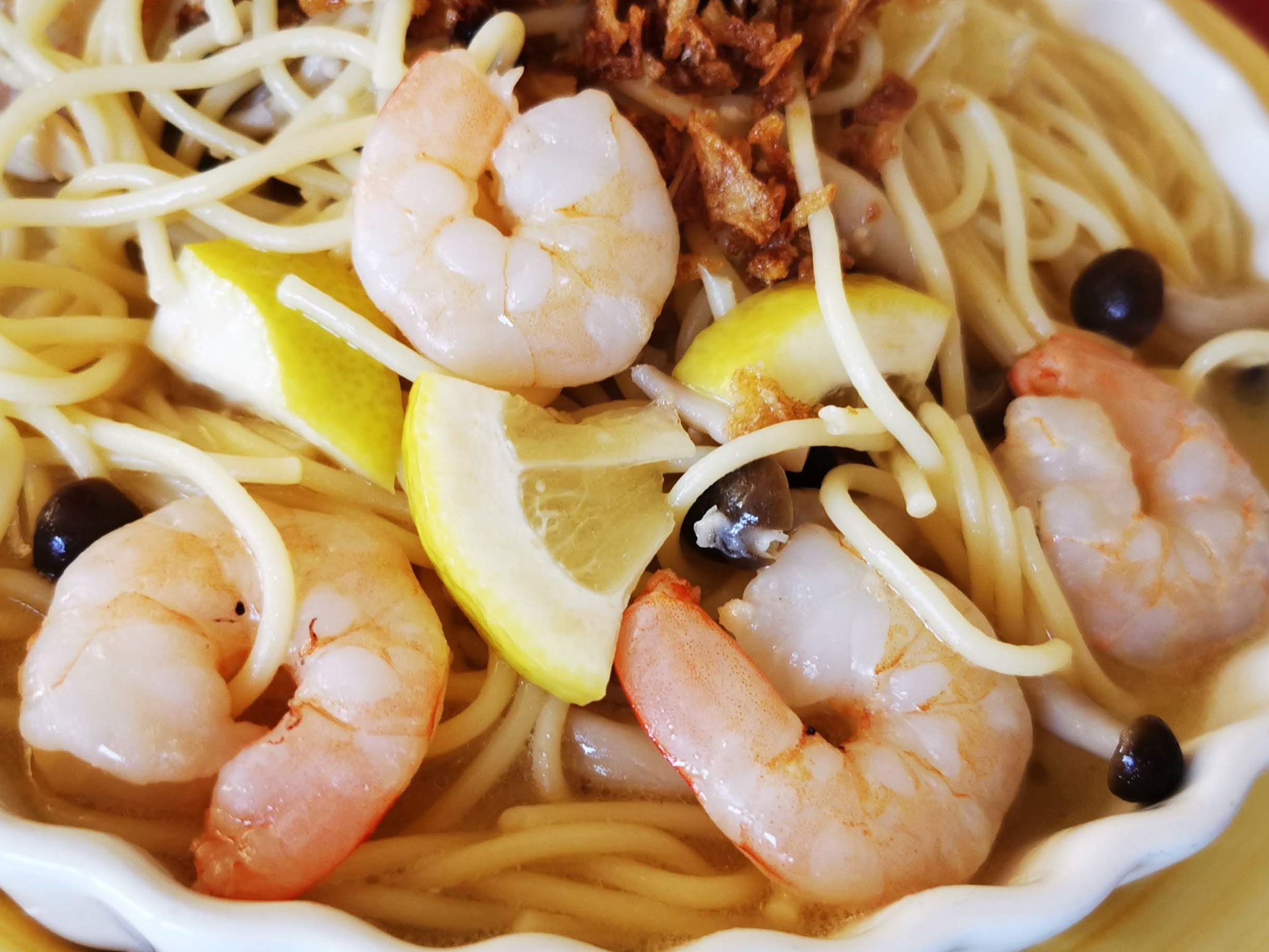 海老は数個入っていて、そこにカットされたレモンが入っています 。