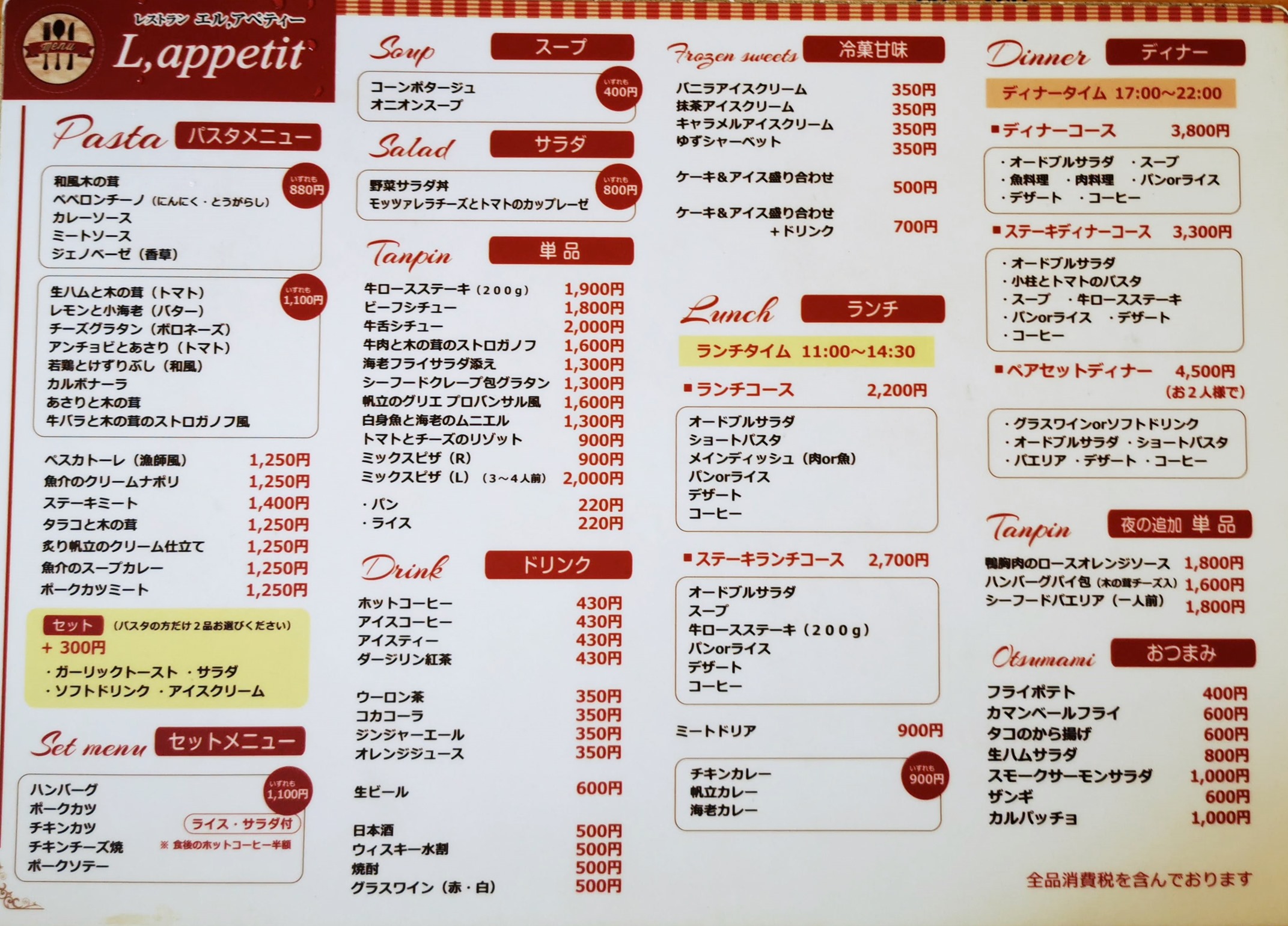 ※メニューはじめ各写真は画像をクリックすると拡大します