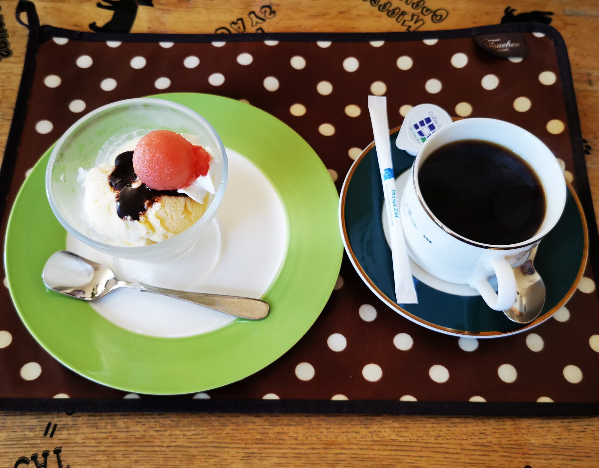 食後に出てくるデザートのアイスとコーヒーです。