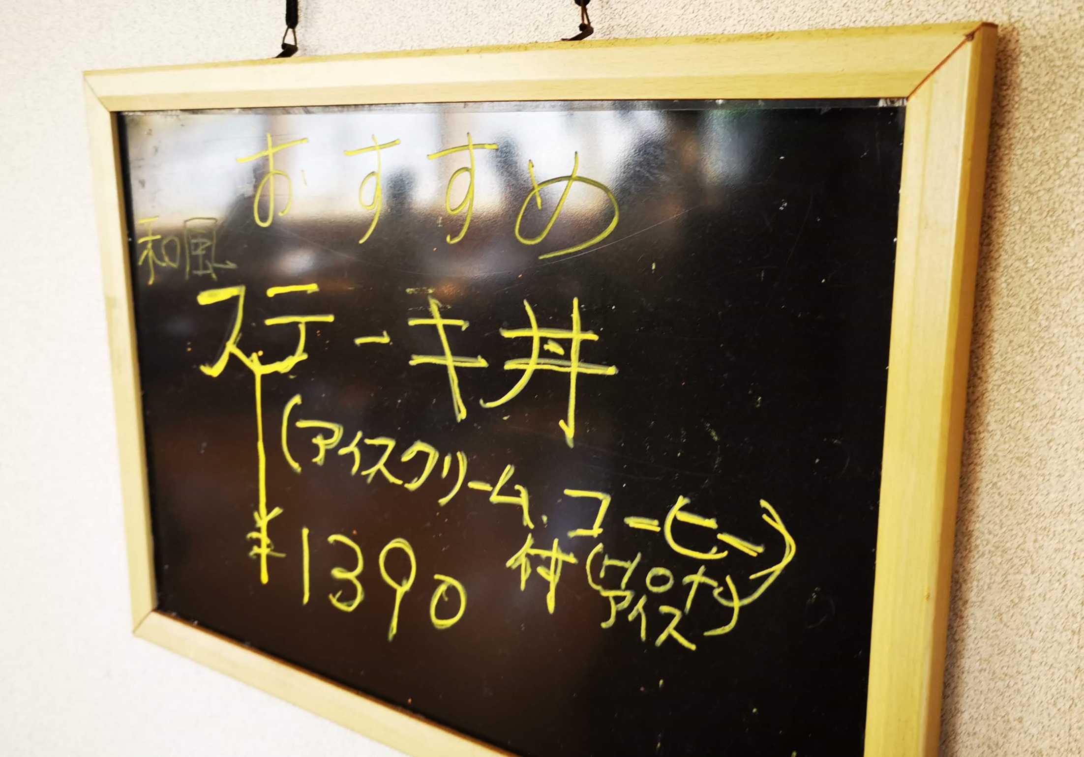 「おすすめ 和風 ステーキ丼」と書かれています。