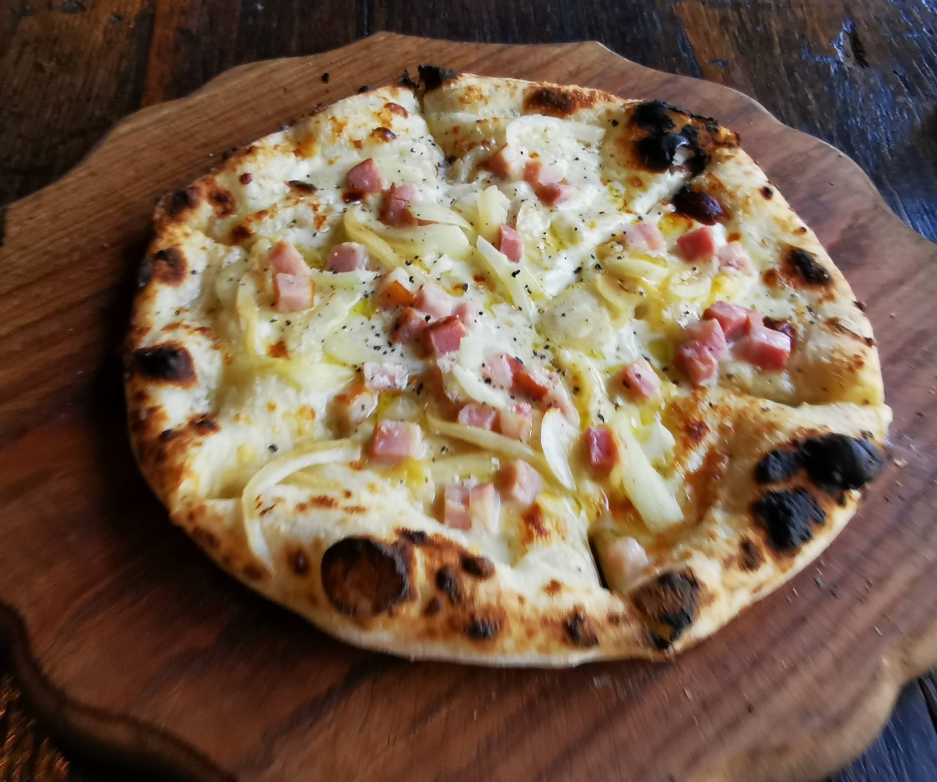 相方さんは、クリーム・ベーコン・オノオンのピザです。1370円(税込)