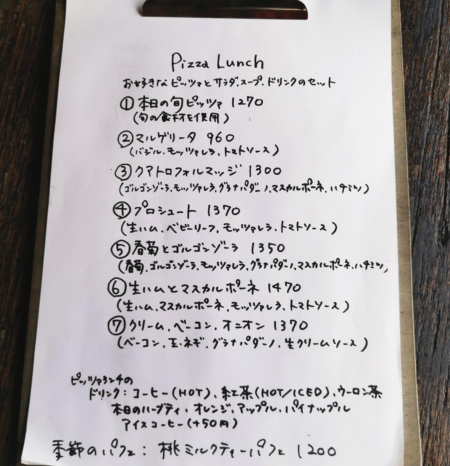 オヤジは、「本日の旬ピッツァ」 1270円(税込)にしました。