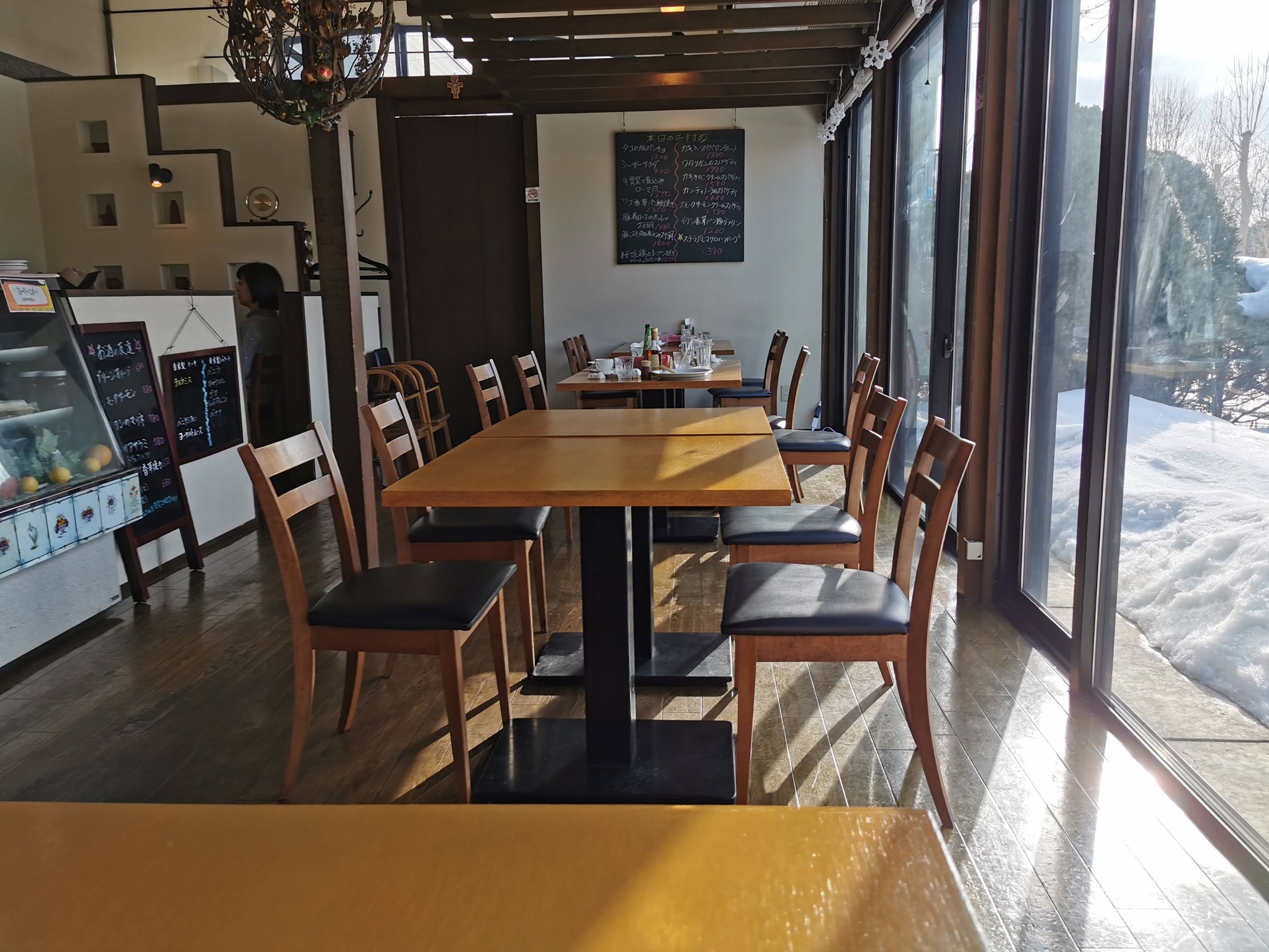 天気のいい日、大きな窓の外にあるテラス席で食べるのもオツなもんでした。