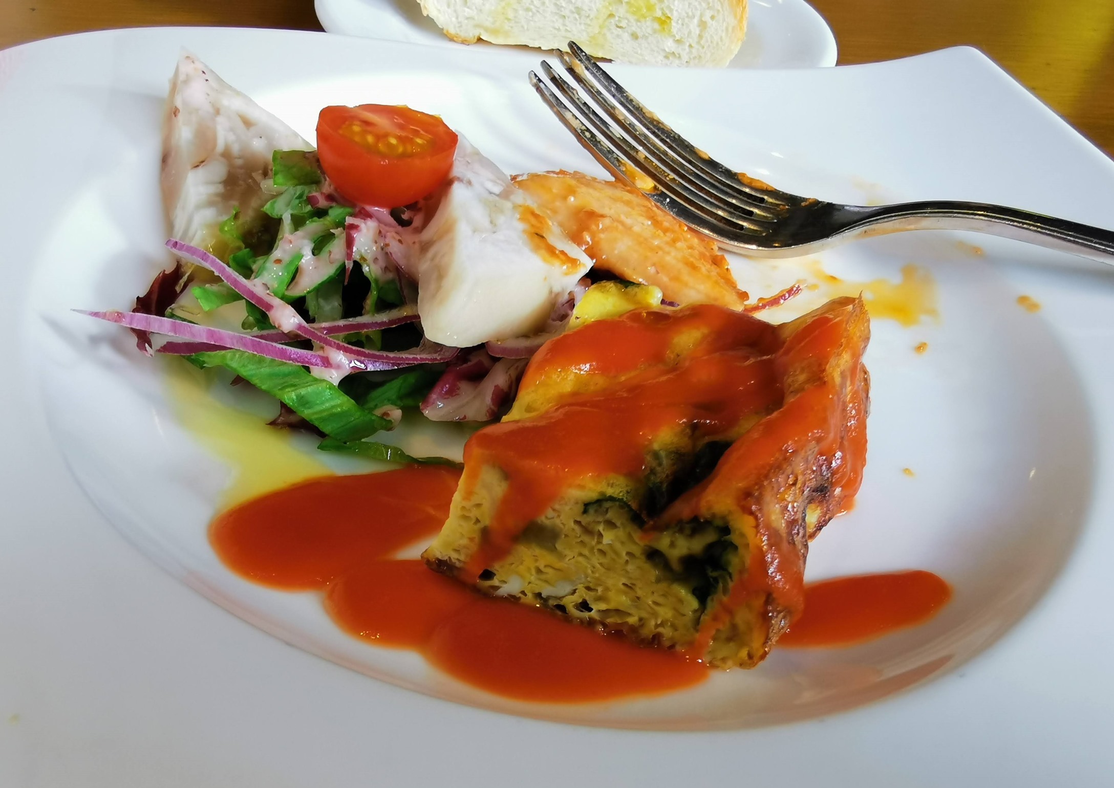 料理の内容は説明がないのでよく分かりませんがキッシュ、テリーヌ、鮭の料理もついてきて、これはワインを飲みたくなるような前菜です。(^^)