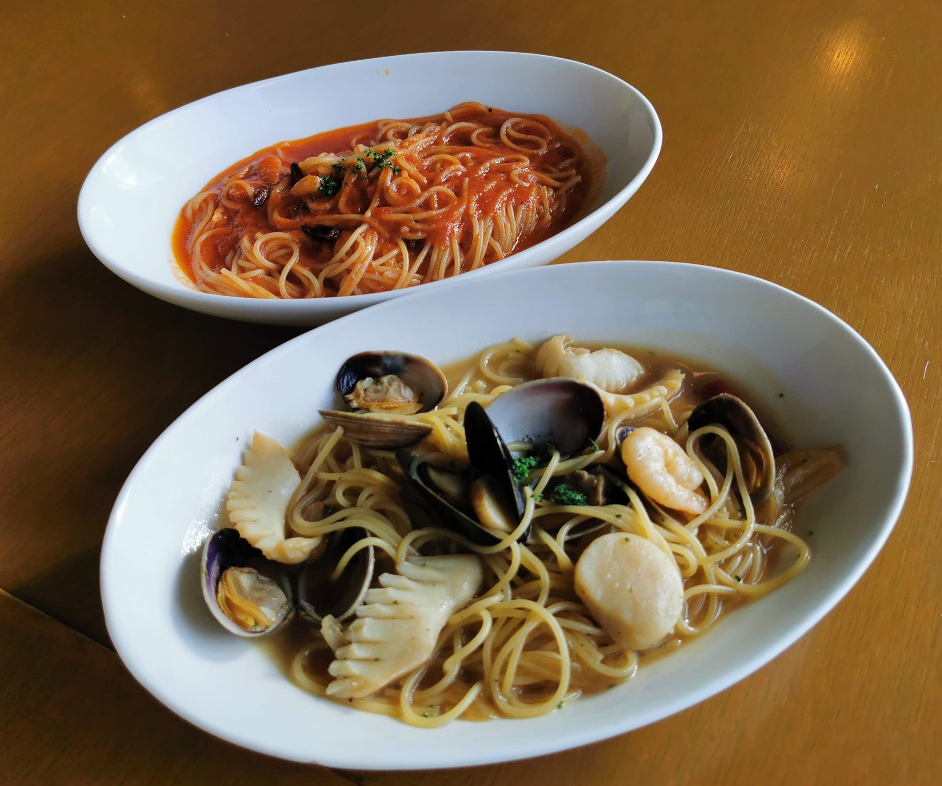 以前は、ピザセットとペスカトーレを食べていました。