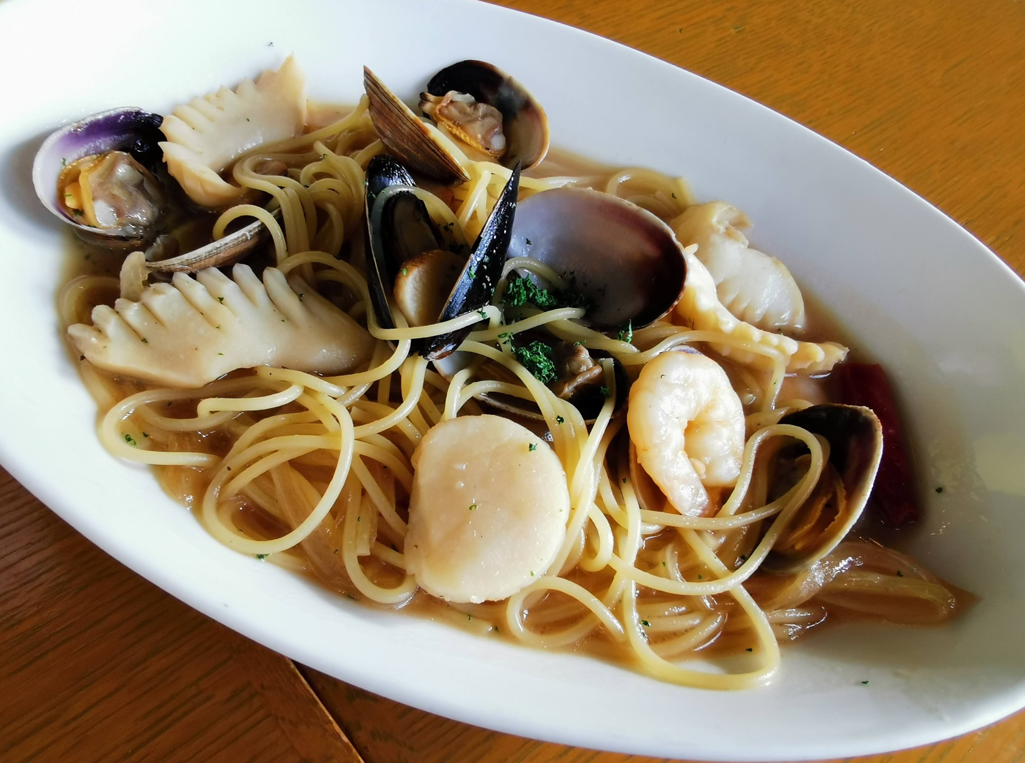 これにはホタテ・エビ・イカ・アサリ・ムール貝などの海鮮が入っています。