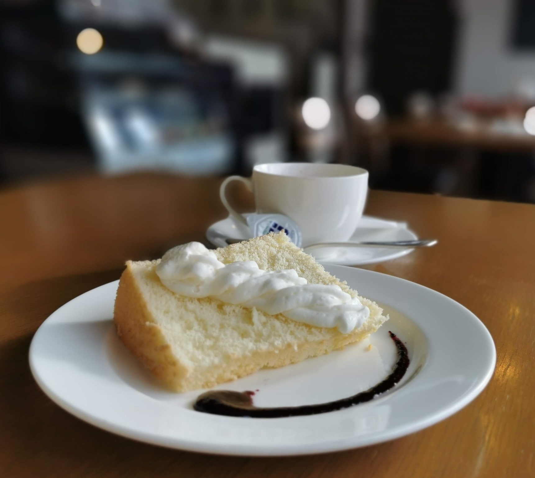 デザートはシフォンケーキで、さすがうまく盛り付けられています。