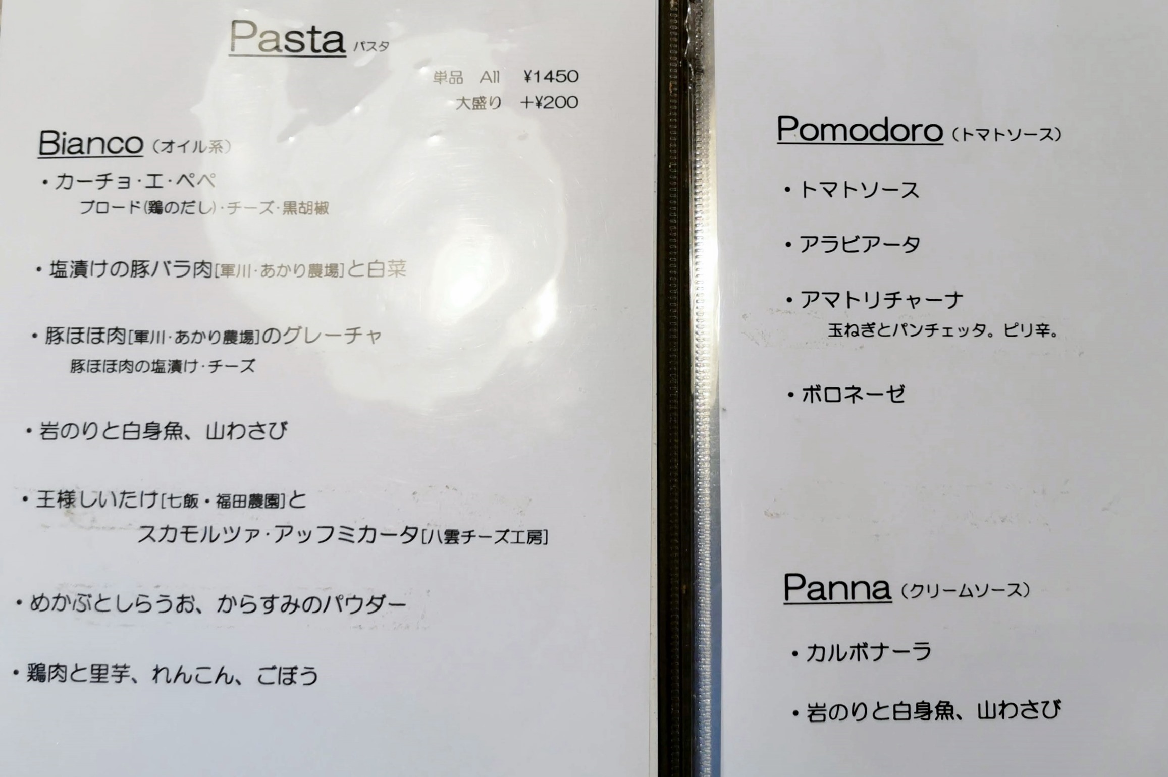 パスタは、この中から選びます。