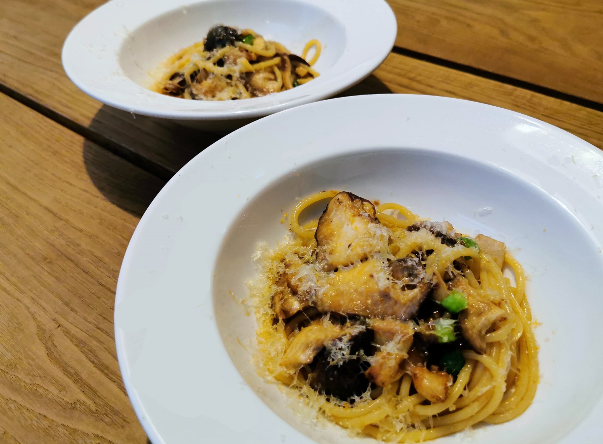 もう一つのパスタは、「王様しいたけとスカモルツァ・アッフミカータ」です。
