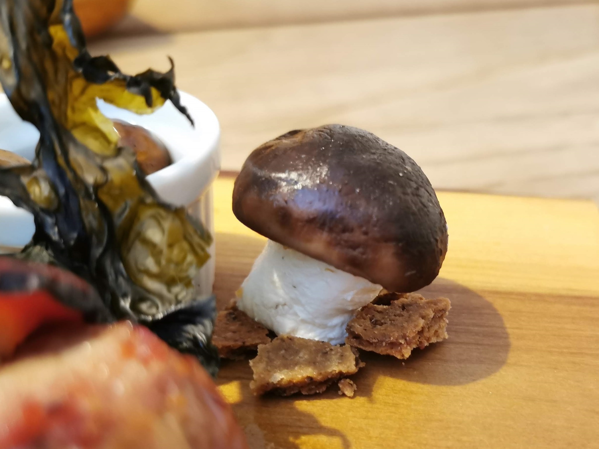 そしてこのキノコ上はホンモノですが「軸」は、クリームチーズのようだったんです。やりますね〜。