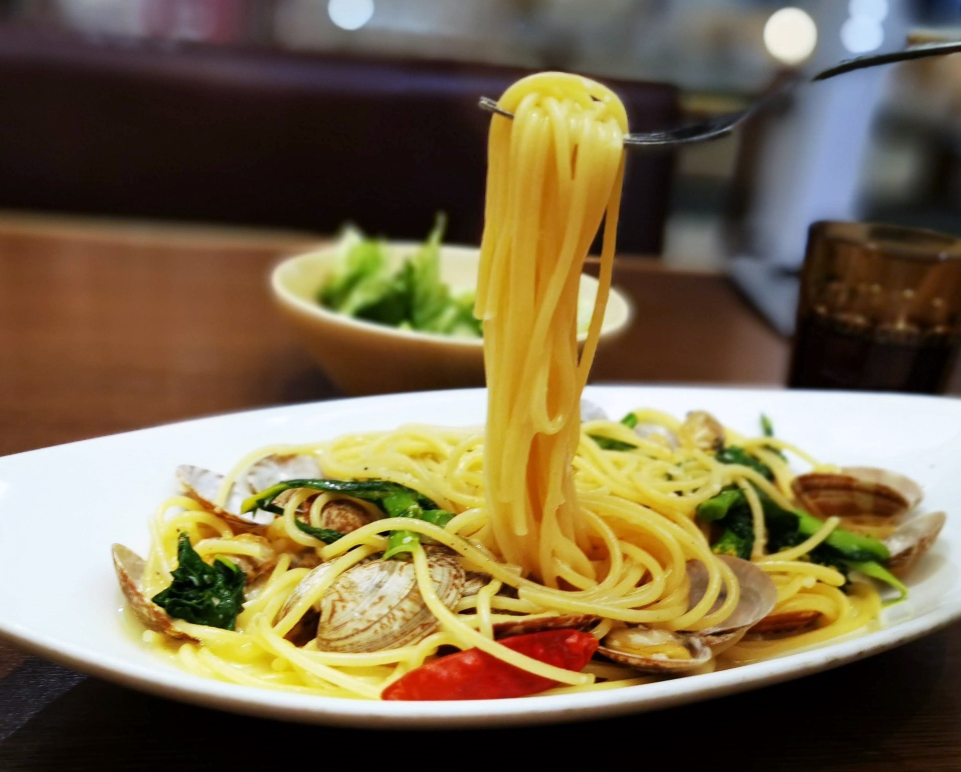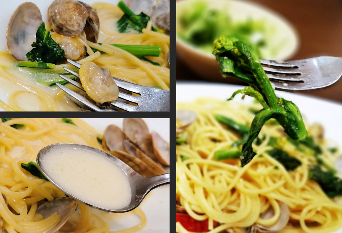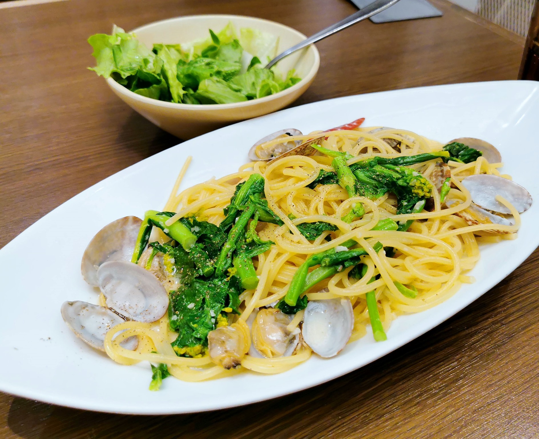 パスタには、菜の花とアサリが春らしさをアピールしています。