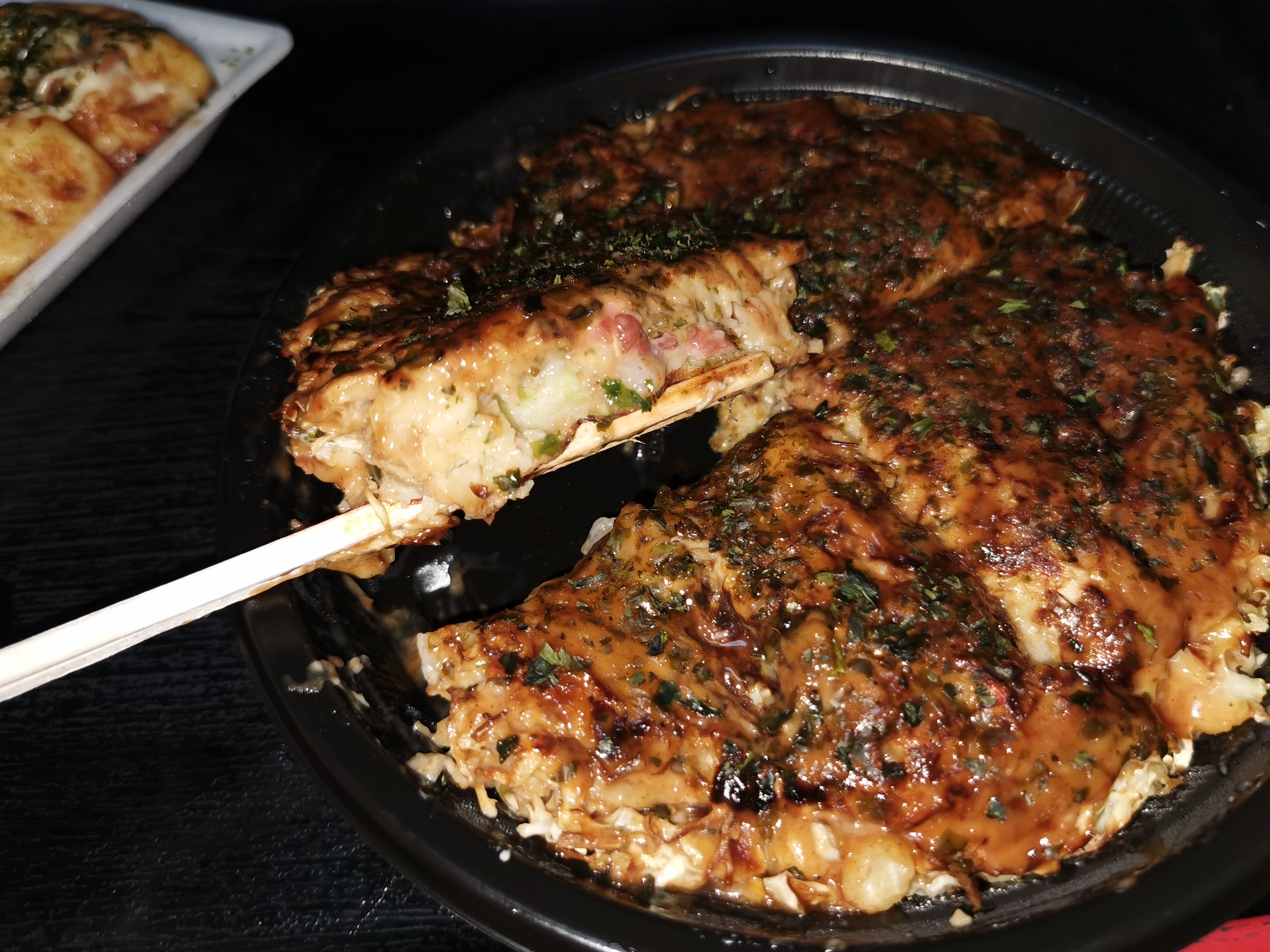 お好み焼きはシーフードミックスで、たこ焼き10個を注文します。