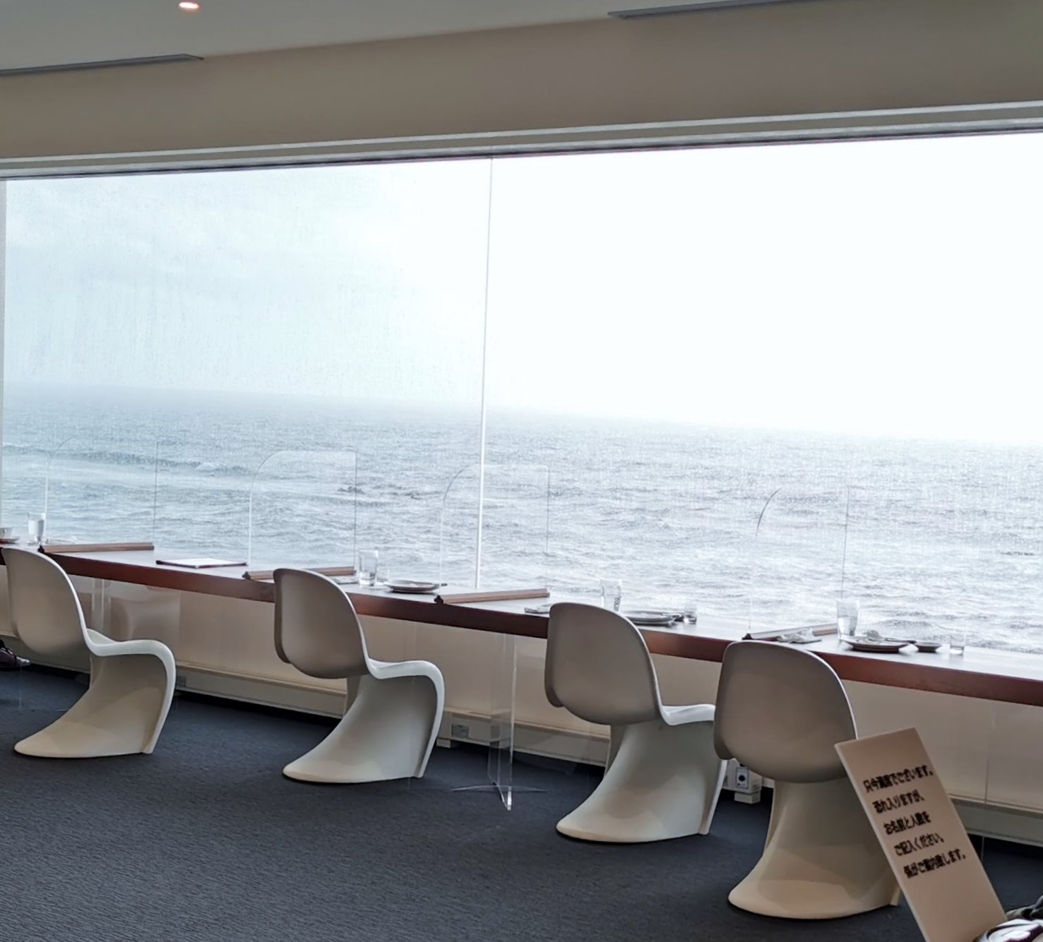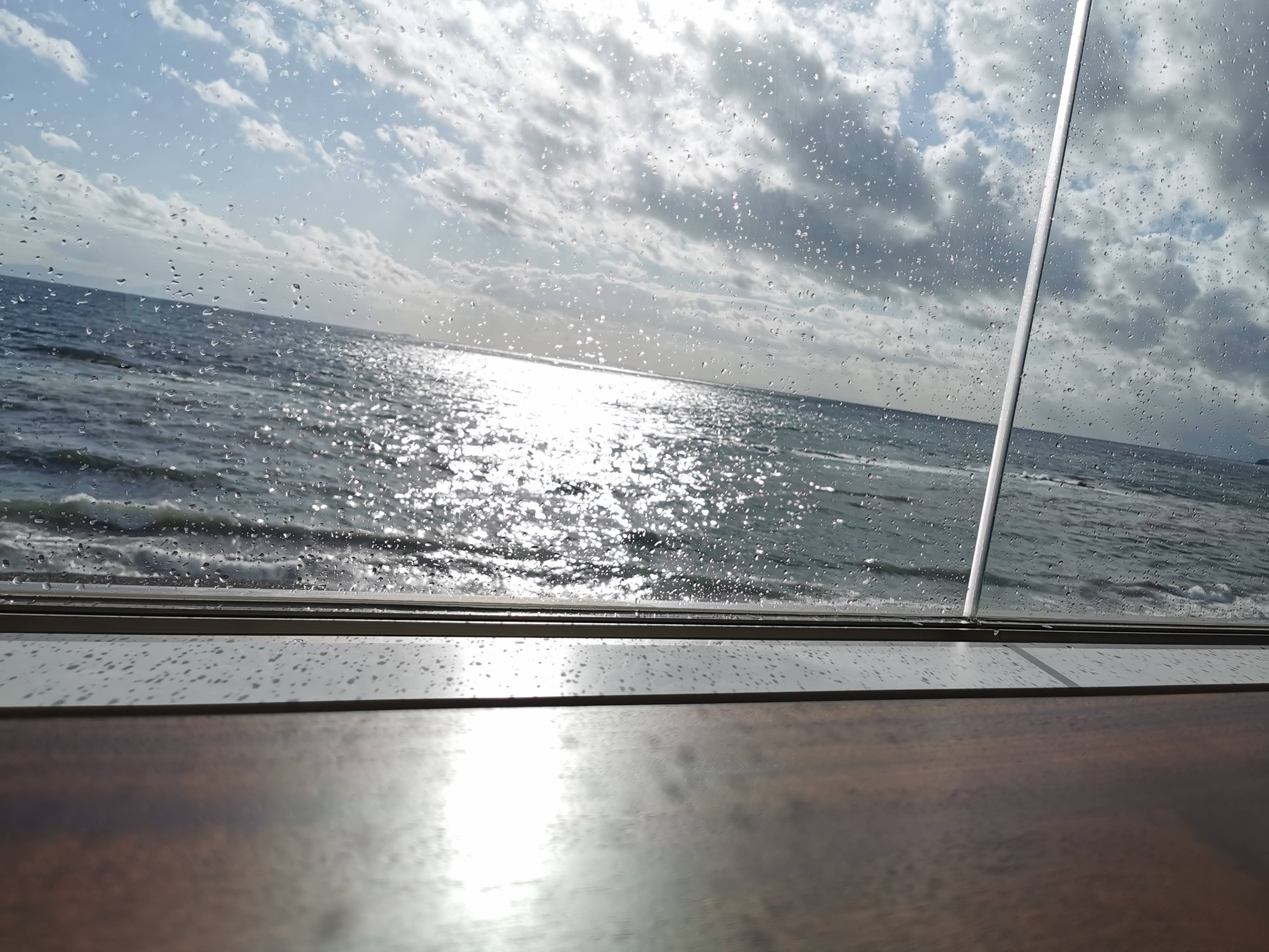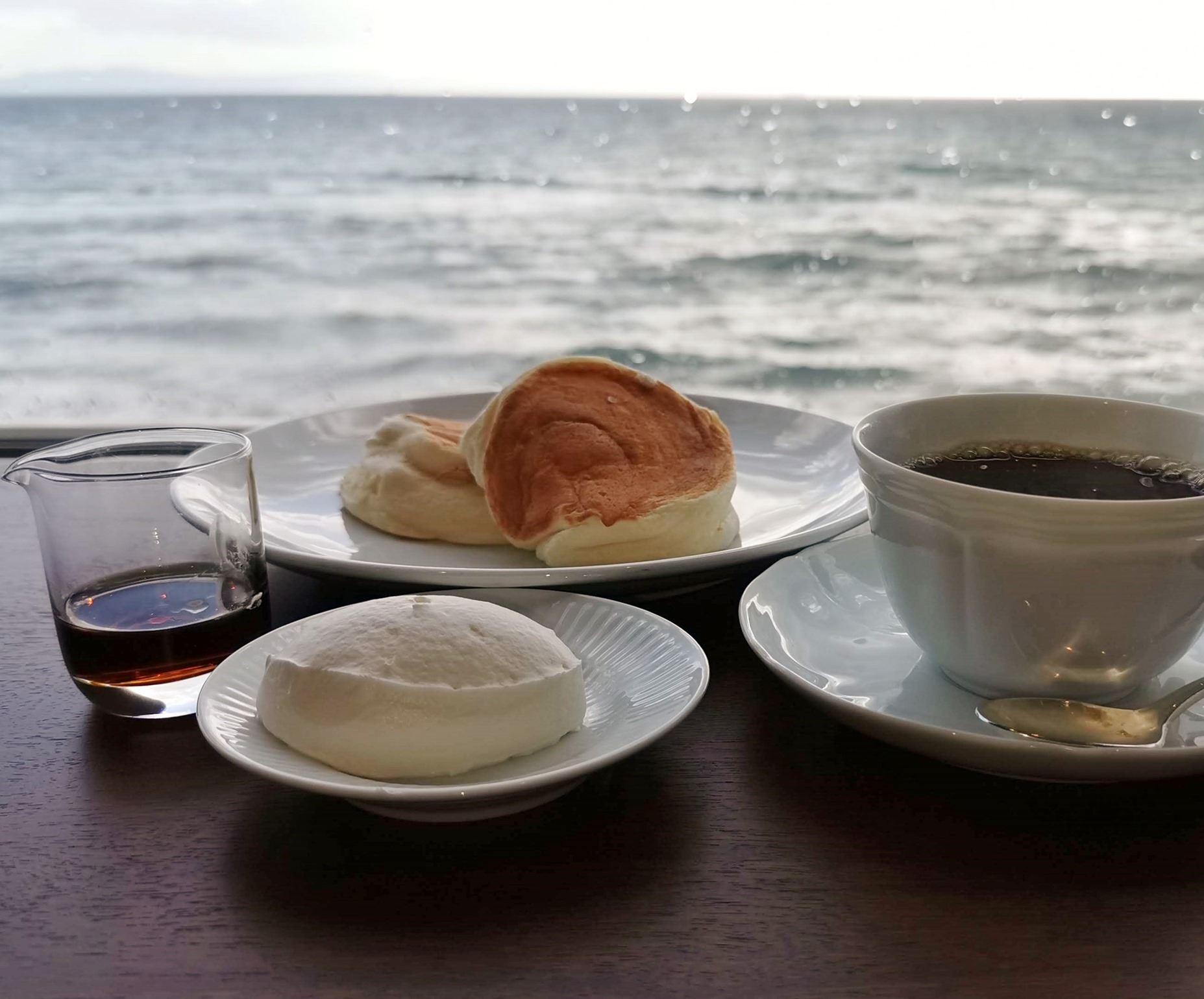 正面の海は、太陽の反射を受けてキラキラとした海を演出しています。