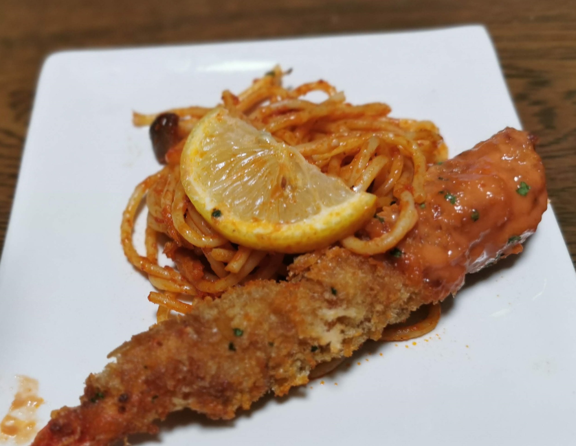 先の「エビフライナポリタン」をこのために残していました。😀
