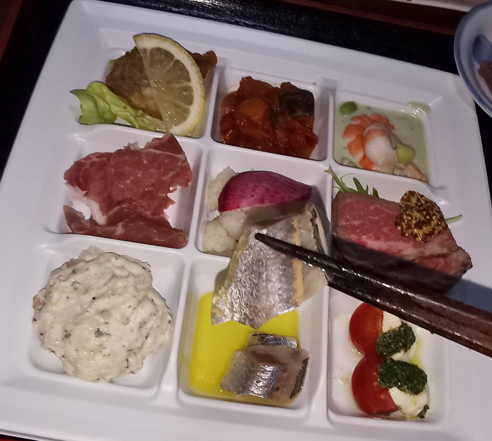 この他はカリフラワーのなんとか、ポテサラ、ラタトゥイユみたい料理でした。