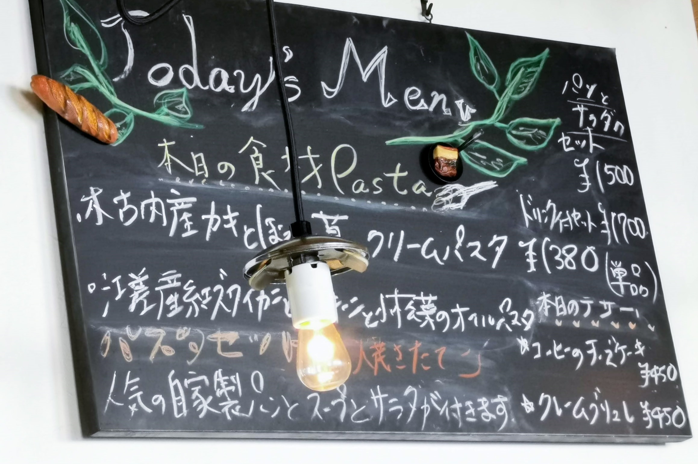 黒板のボードに書かれてるのはこの日のメニューで、木古内の牡蠣パスタは以前に食べているので、まだ食べていない紅ズワイガニのパスタが面白そうですので注文してみます。