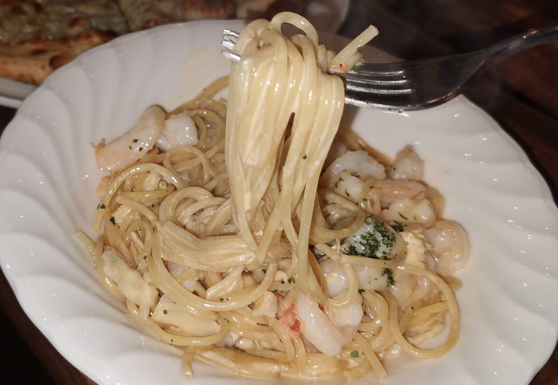 濃厚なソースと海老で美味しいパスタでした。