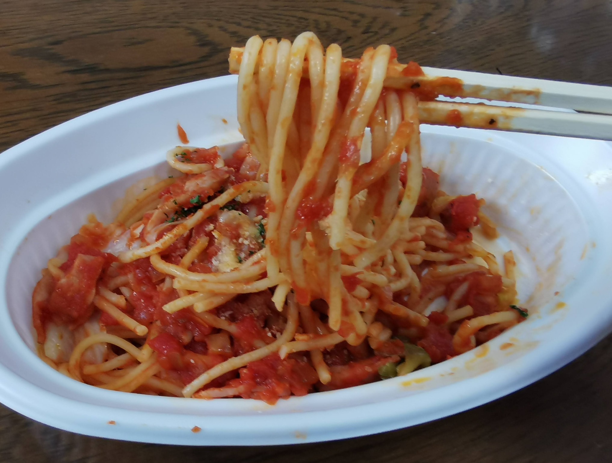 パスタは事前に作ってるんで、このような感じの麺になってしまいます。