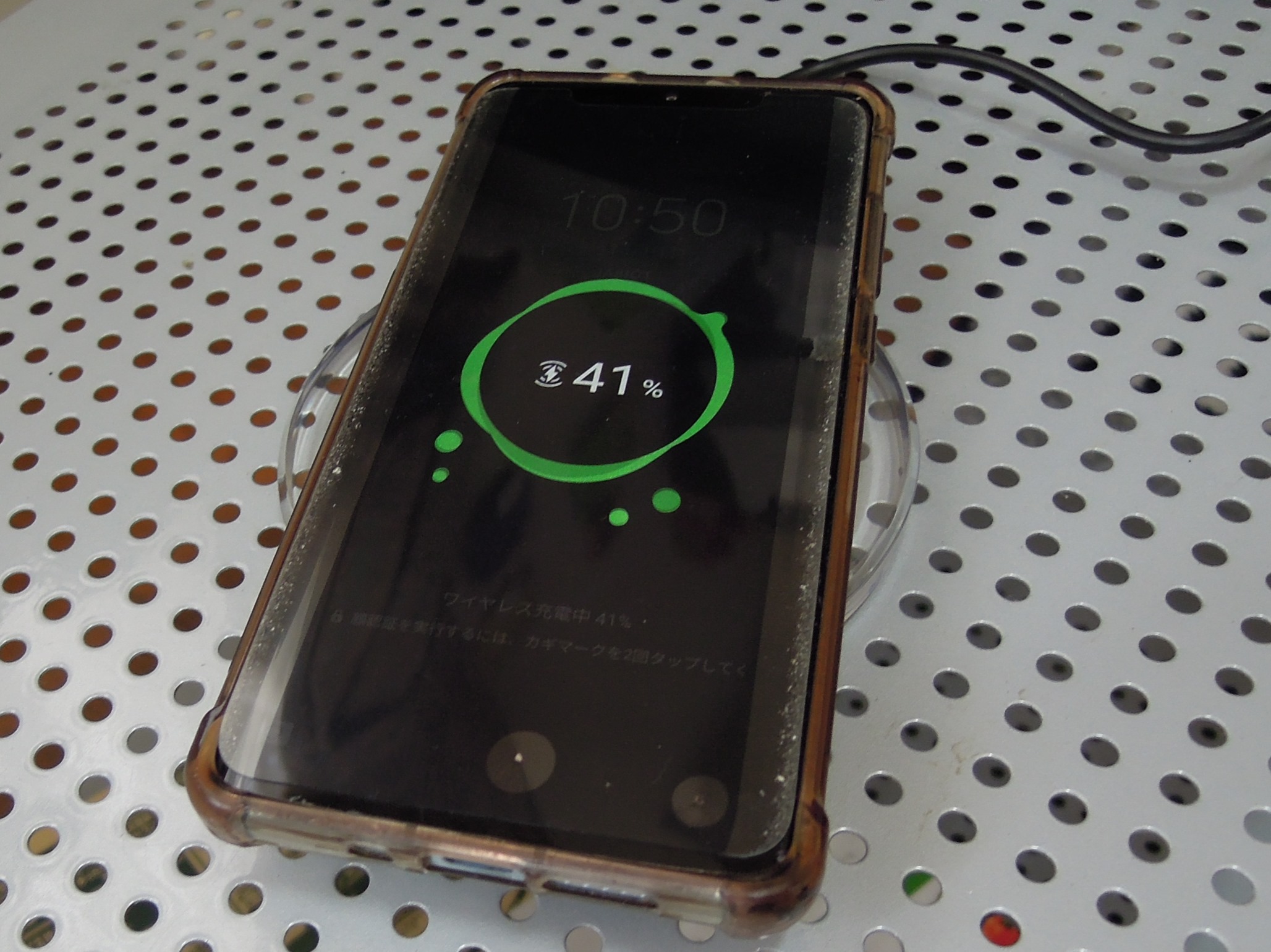 そうそう、スマホのカバーをつけていても問題なく充電できました。