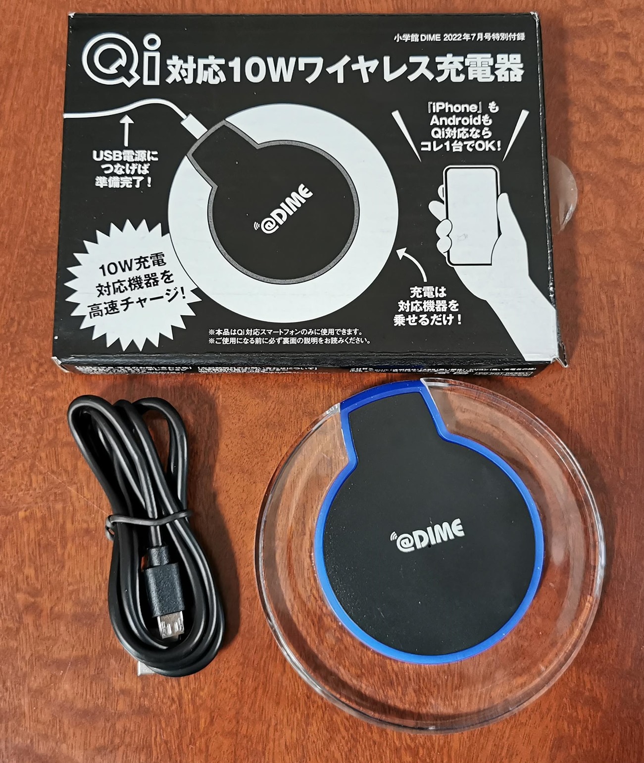 DIME(ダイ7月号の付録は、スマホのワイヤレス充電器です。