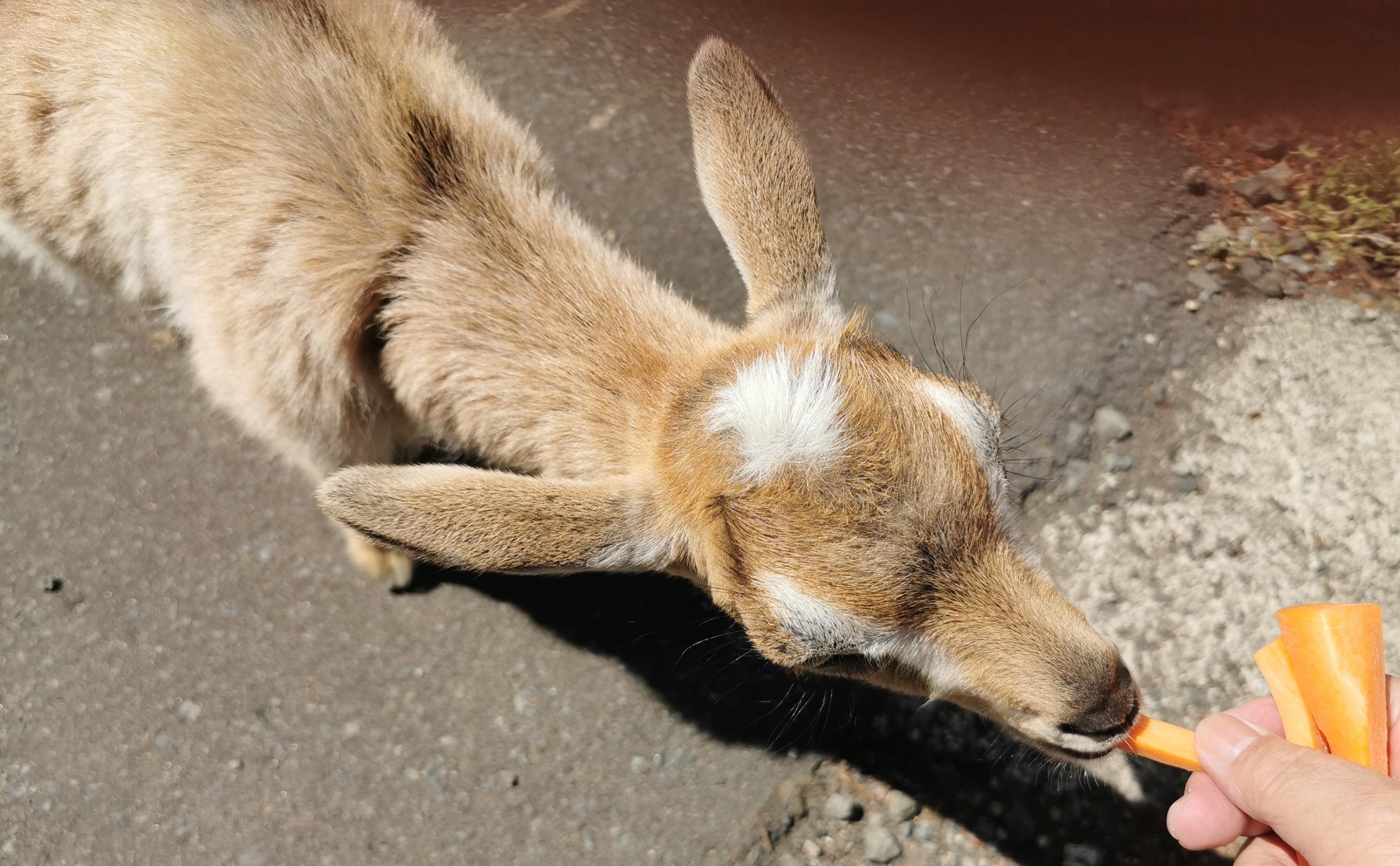 人参を近づけると初めは人見知りしていましたが、すぐに慣れいい感じで食いつきます。