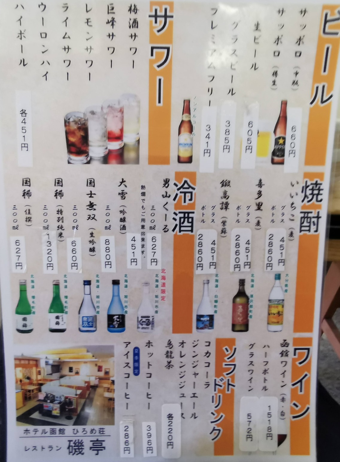 ドリンクのメニューです。