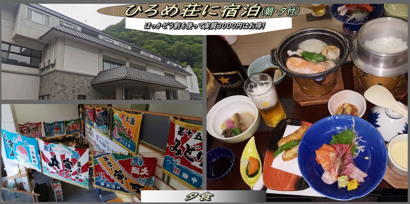 どうみん割を使って「ひろめ荘」に宿泊してきました。