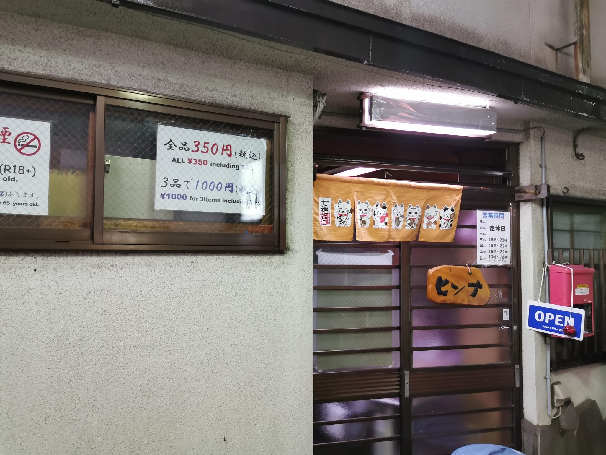 瀧澤商店から続いては、これまた立ち飲みの「ヒンナ」です。