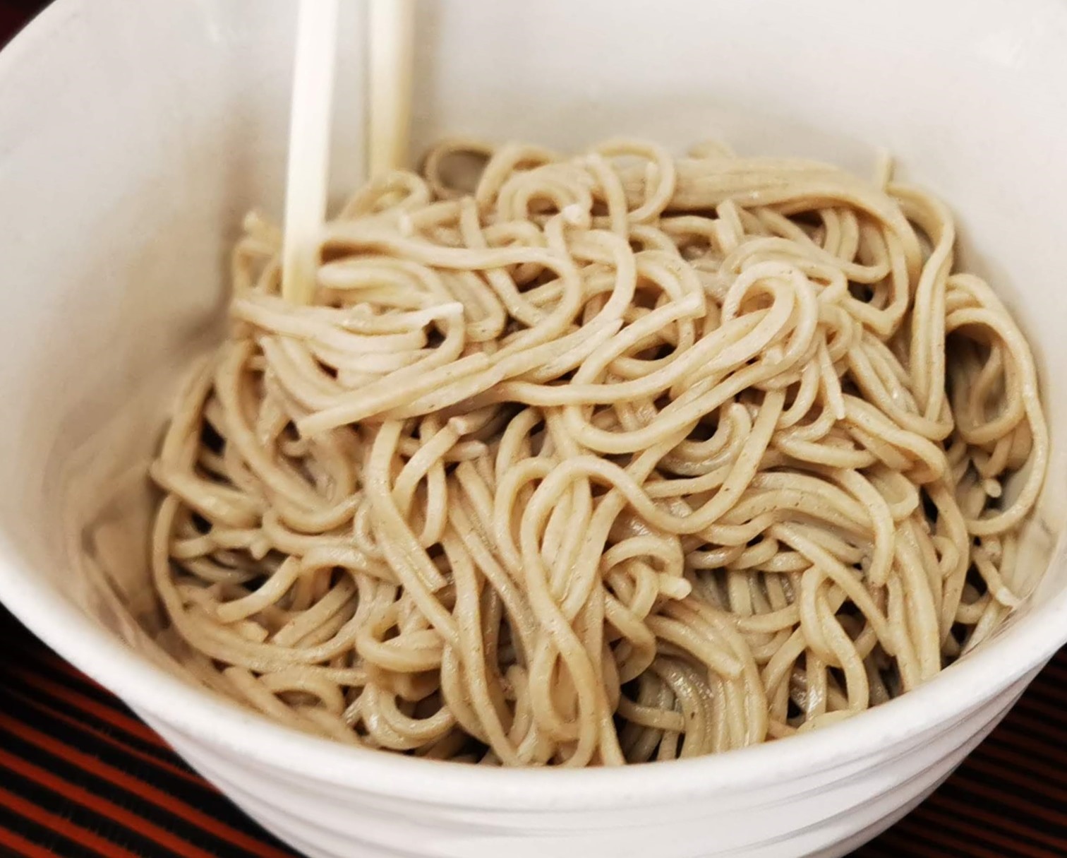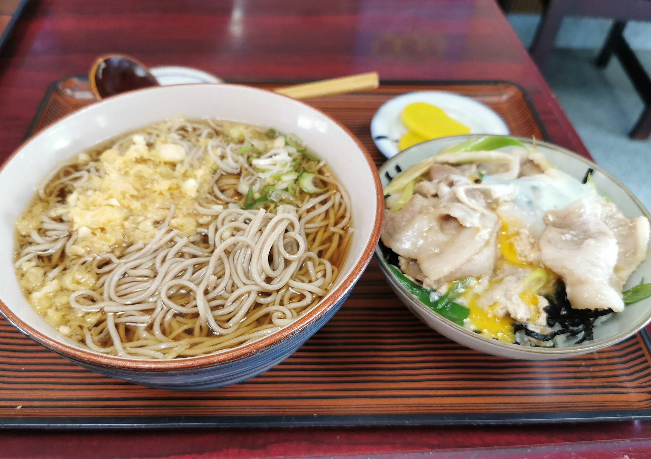 先輩が冷たい蕎麦なので、オヤジは温かいそばです。
