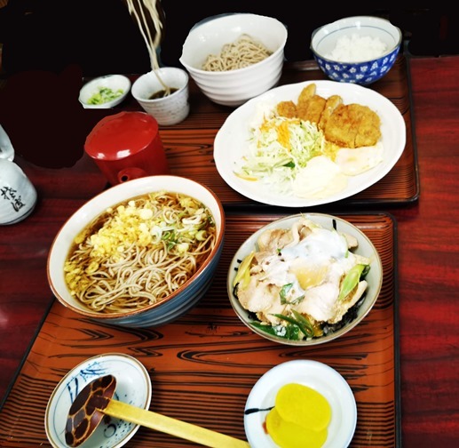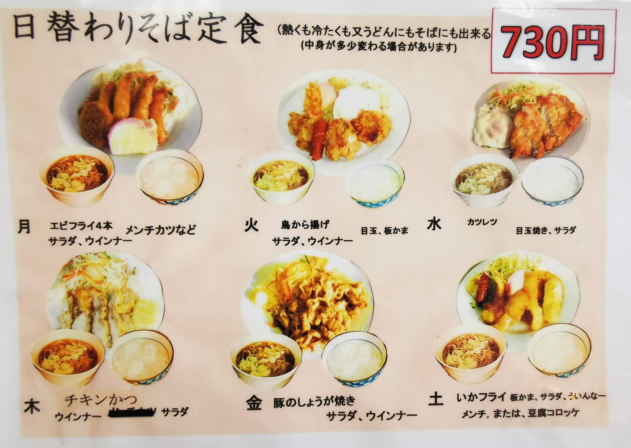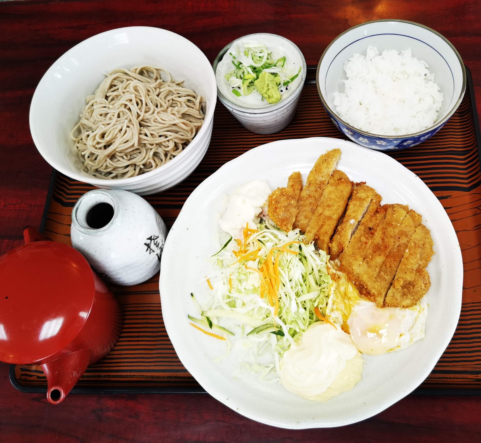 先輩のこちらが、水曜日の日替わりそば定食の「カツレツ」です。730円