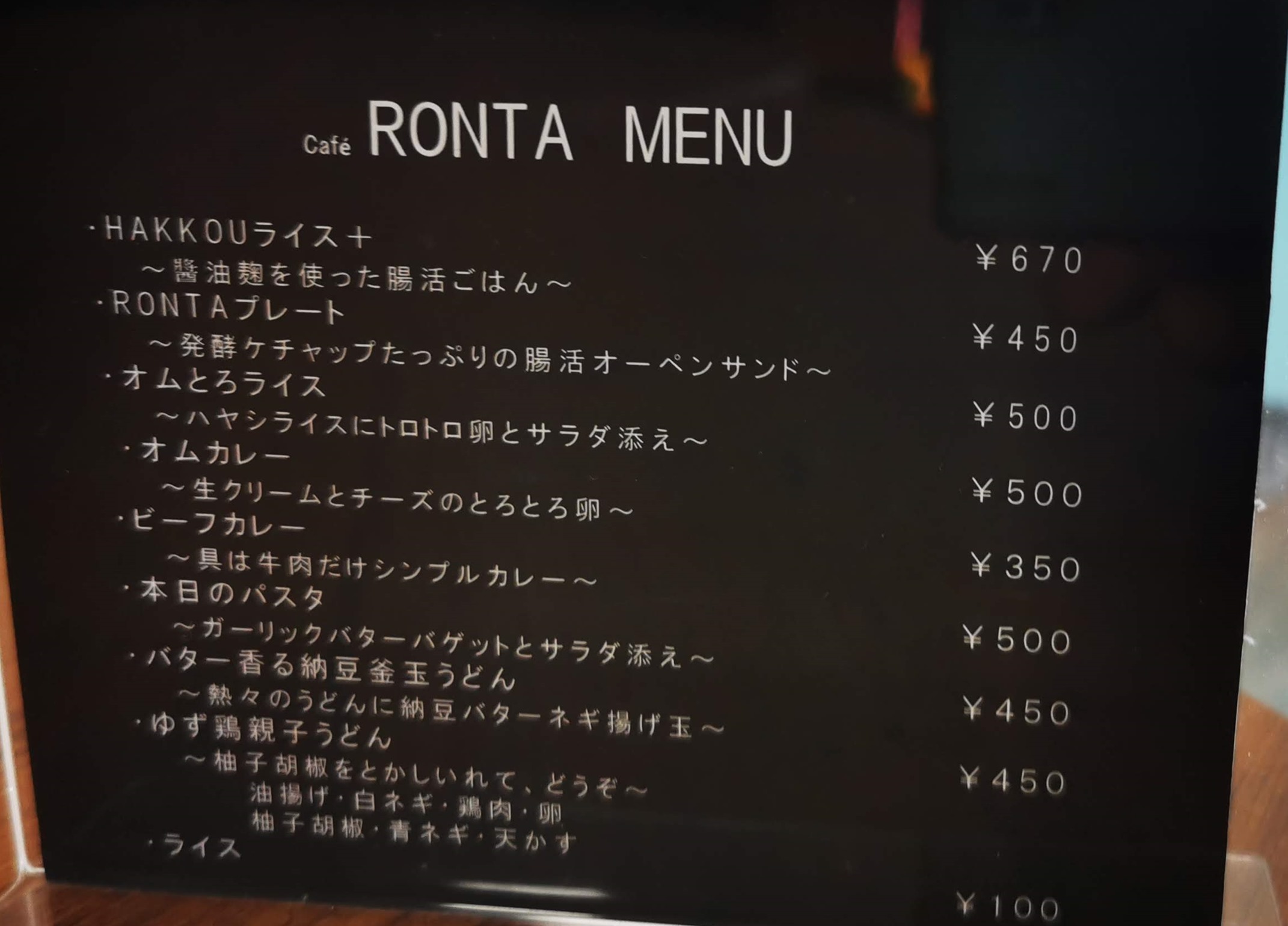 オヤジは、「RONTAプレート」とコーヒーにしました。450円+150円