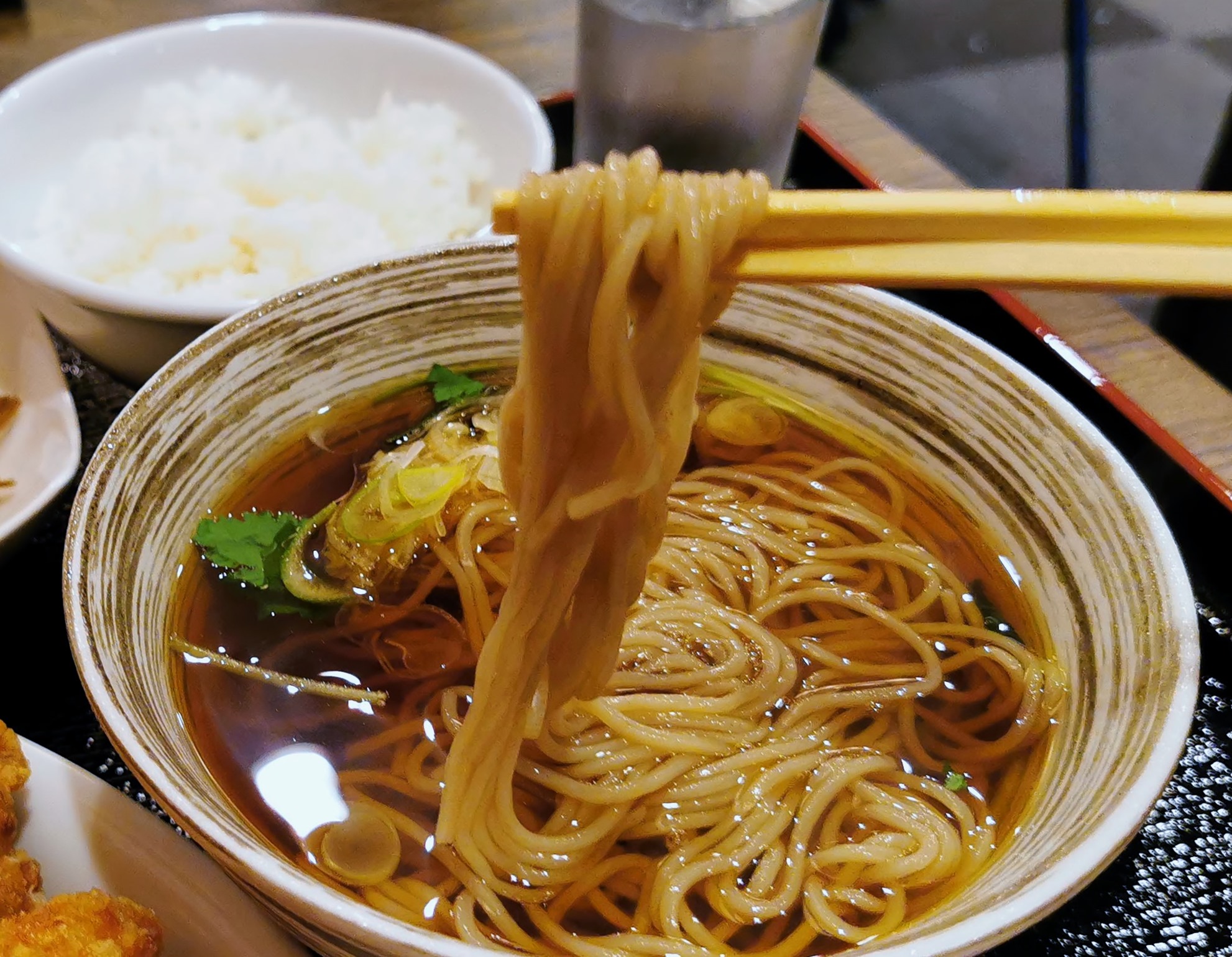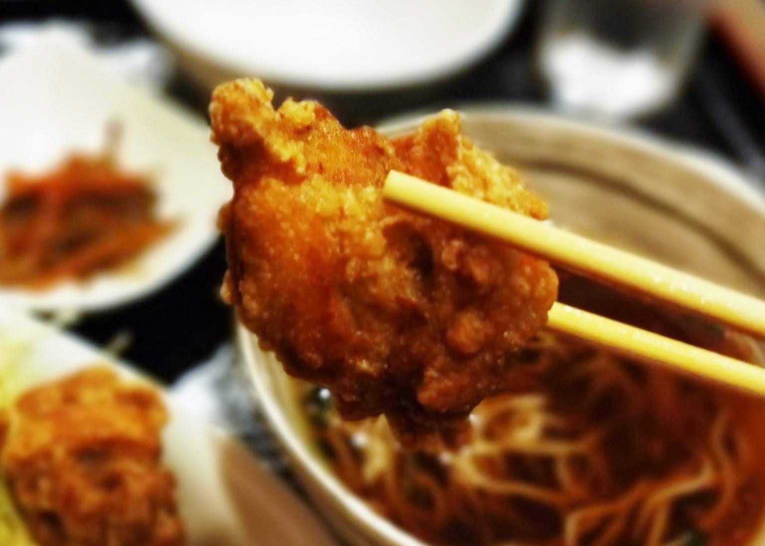 ウリである、から揚げと蕎麦を手前にもってきました。